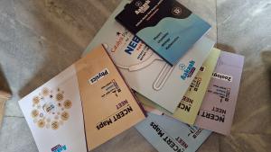 class 11 and 12 covered in details zoology , botany , chemistry , physics ( four separate books ) Along with many model test papers Totally based on NCERT , best for cracking NEET along with Aakash model question papers and catalyst question bank for NEET A full package to crack NEET efficiently , best for last minute practice Total 6 books (willing to bargain )